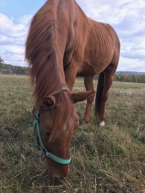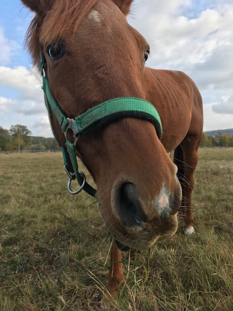 Zajrzałam do Credita w połowie października. Jest w bardzo dobrej formie, otrzymuje suplementy dla seniorów, toczy swoje końskie życie “na oku” Basi Głębockiej. Jest obecnie padokowany z innym wałachem, który przebywa w hostelu pp.Głębockich. Trawy, siana i przestrzeni konie mają pod dostatkiem. Wieczorem w żłobie czeka gnieciony owies i przyjazna ręka człowieka prowadzi do spokojnej stajni. Czego trzeba więcej na emeryturze?